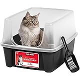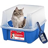 IRIS USA Cat Litter Box Large Open Top with High Sided Walls Tall Scatter Shield Scoop Included Easy Clean Plastic Pan Stain Resistant for Big Cats Kittens Indoor Multi-Cat Households