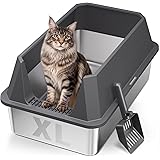 URPOWER Stainless Steel Cat Litter Box with Lid Extra Large Enclosed Litter Box Non-Sticky Metal Pan with High Sided & Scoop, Odor Free, Front & Top Entry, Anti-Leakage, Easy Cleaning