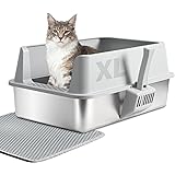 Stainless Steel Litter Box, Extra Large Litter Boxes for Big Cats, XL Metal Cat Litter Box with High Sides Lid, Anti-Urine Leakage, Never Absorbs Odors, Easy Cleaning, Non-Stick, Include Scoop and Mat