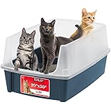 IRIS USA Cat Litter Box XX-Large Open Top with High Sided Walls Tall Scatter Shield Scoop Included Easy Clean Plastic Pan for Big Cats Kittens Multi-Cat Households 30"L x 20"W x 14"H Black