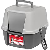 IRIS USA Cat Litter Box Large Top Entry with Lid Enclosed Covered Hooded Design Litter Catching Scatter Shield Pan Dog Proof Pet Proof Scoop Included Odor Control for Indoor Cats Kittens Gray/White